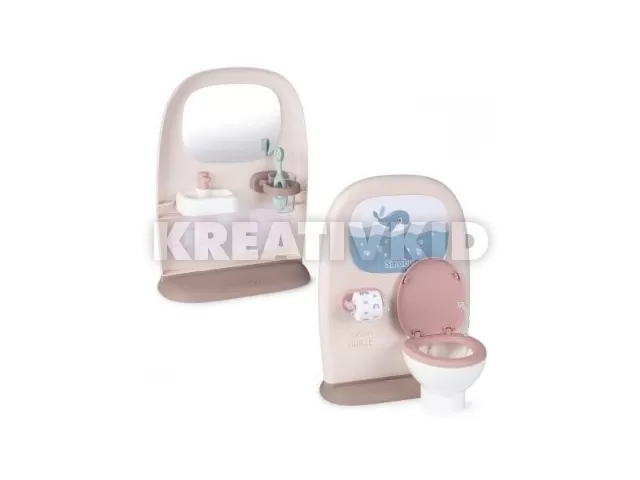 WC játékbabának, mosdóval, tükörrel, csészével és fogkefétől. 42 cm-es babához.