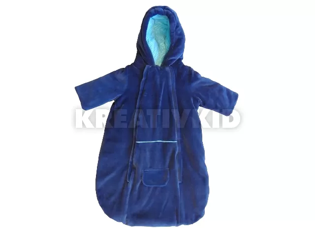 Bélelt, kívül plüss, belül 100% pamut anyagból készült, cipzárazható zsák, amelyet a babakocsiba is lehet rögzíteni.