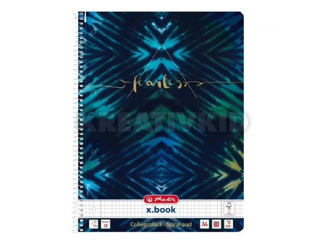 A4-es méretű 80 lapos Batik Fearless spirálfüzet, kockás kivitelben, 70g/m2-es famentes belívvel, margóval, lyukasztott, perforált lapokkal.