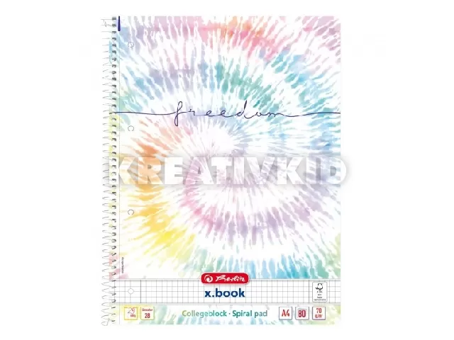 A4-es méretű 80 lapos Batik Freedom spirálfüzet, kockás kivitelben, 70g/m2-es famentes belívvel, margóval, lyukasztott, perforált lapokkal.