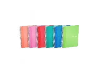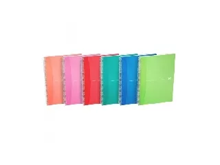 Oxford My Rec Up A4-es méretű, 90 lapos, kockás, ikerspirálos jegyzetfüzet, 6 különböző színben, hófehér belívvel, margóval. A borítók 100%-ban újrah...