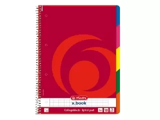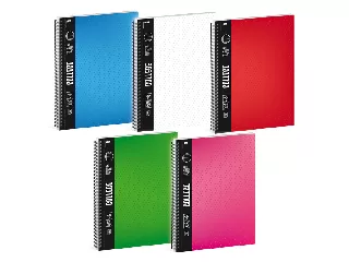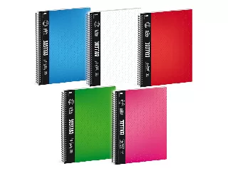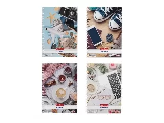 A4-es méretű 80 lapos vonalas spirálfüzet, 70g/m2-es famentes belívvel, margóval, lyukaszott és perforált lapokkal, 5 minta vegyesen.