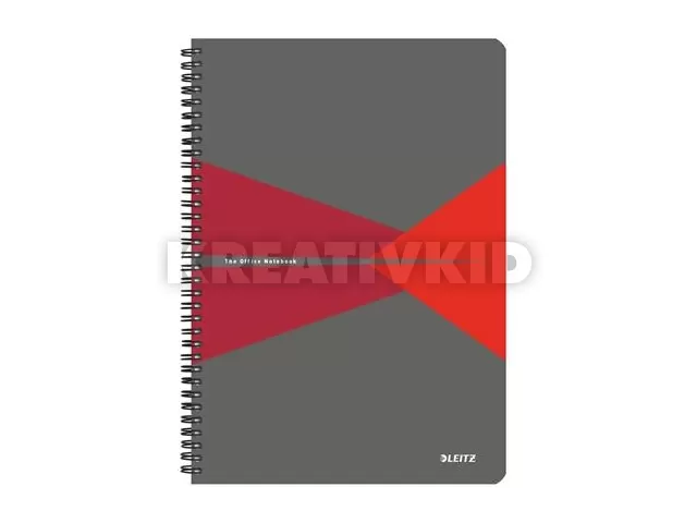 Spirálfüzet, A4, kockás, 90 lap, PP borító, LEITZ "Office", szürke-piros