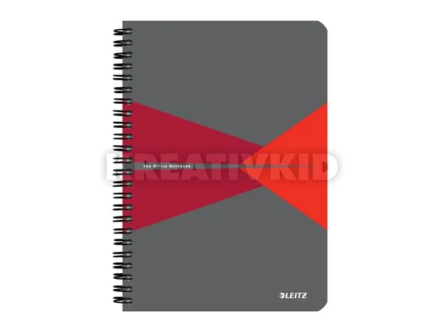 Spirálfüzet, A5, kockás, 90 lap, PP borító, LEITZ "Office", szürke-piros
