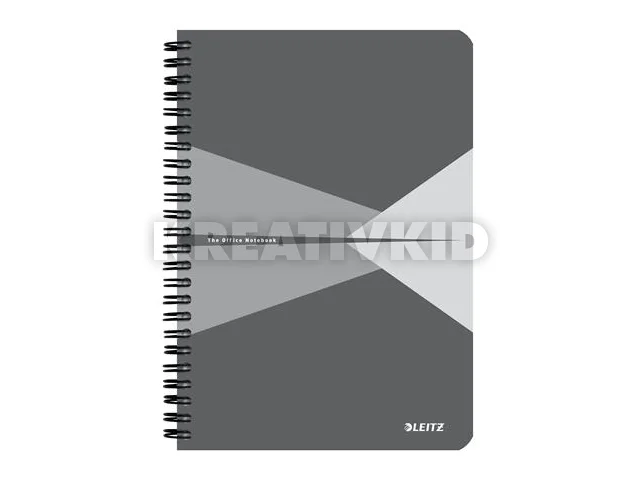 Spirálfüzet, A5, kockás, 90 lap, laminált karton borító, LEITZ "Office", szürke