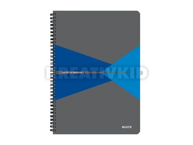 Spirálfüzet, A4, kockás, 90 lap, laminált karton borító, LEITZ "Office", szürke-kék