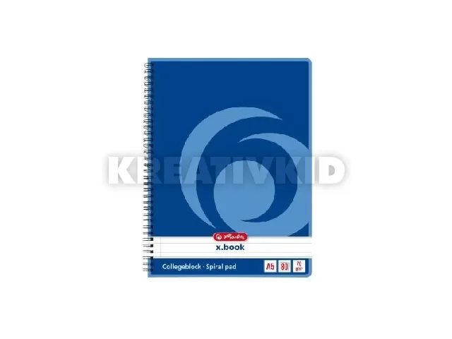A5-ös méretű 80 lapos vonalas spirálfüzet, 70g/m2-es famentes belívvel, lyukasztott, perforált lapokkal, ikerspirállal, lekerekített sarkokkal.