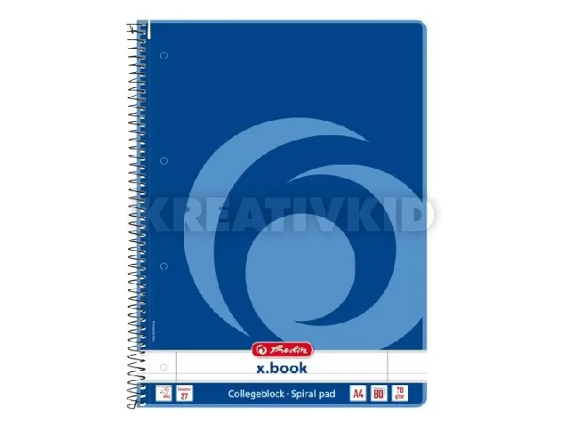 A4-es méretű 80 lapos spirálfüzet, vonalas kivitelben, 70g/m2-es famentes belívvel, az oldalak mindkét oldalán margóval, lyukaszott, perforált lapokkal, lekerekített sarkokkal.