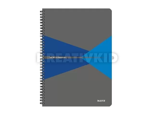 Spirálfüzet, A4, vonalas, 90 lap, PP borító, LEITZ "Office", szürke-kék
