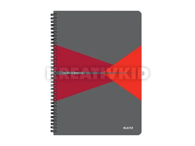 Spirálfüzet, A4, vonalas, 90 lap, PP borító, LEITZ "Office", szürke-piros