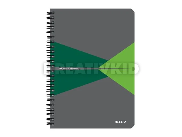 Spirálfüzet, A5, vonalas, 90 lap, PP borító, LEITZ "Office", szürke-zöld