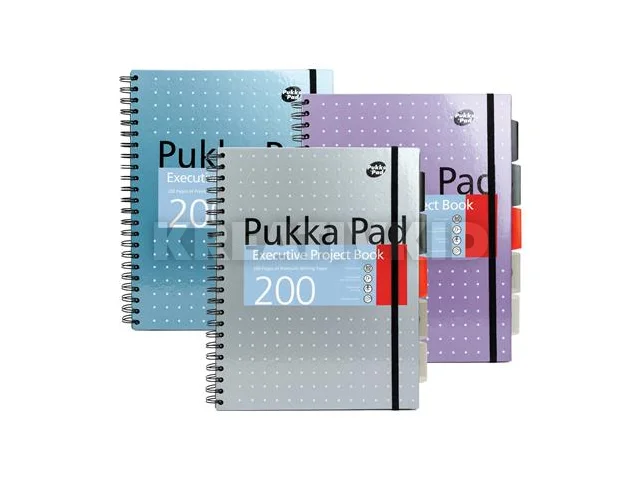 Spirálfüzet, A4+, vonalas, 100 lap, PUKKA PAD "Metallic Project Book", vegyes szín