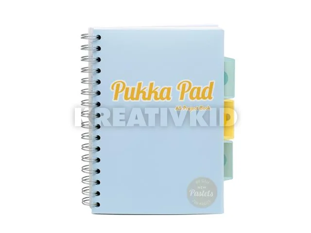 Spirálfüzet, A5, vonalas, 100 lap, PUKKA PAD "Pastel project book", vegyes szín