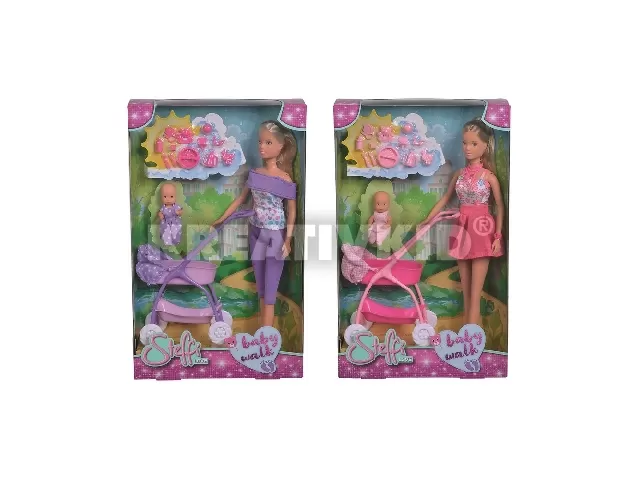 Steffi Love: Steffi baba babakocsival és kisbabával - rózsaszín
