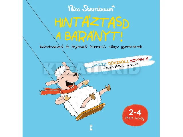 Igazi varázskönyvet tartasz a kezedben, mely játszani hív és minden oldalon új meglepetést tartogat! Rázd meg, dörzsöld meg, koppints rá vagy énekelj neki egy dalt aztán nézd meg, mi történik a következő oldalon! Hintáztasd a bárányt, szabadítsd ki a pillangót, mentsd meg a kisegeret a macskától!Nico Sternbaum Rázd meg az almafát! című interaktív könyve a német gyerekek után a magyarok szívét is meghódította, a szülői beszámolók szerint sokak elsőszámú kedvence lett. A mesekönyvsorozat második darabja, a Hintáztasd a bárányt! hasonlóan lebilincselő kalandokat ígér, miközben játékosan fejleszti a kicsik mozgását, figyelmét és beszédkészségét. A közös olvasás során a gyerekek úgy érezhetik, ők irányítják a mesét - és minden lapozással újabb sikerélményt élhetnek át.Fejlesztési előnyök:- Mozgáskoordináció: rázás, kopogás, döntögetés- Koncentráció: a feladatok lekötik a figyelmet- Nyelvi fejlődés: a közös olvasás és beszélgetés fejleszti a beszédkészséget