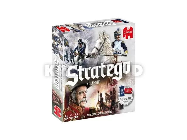 Jumbo: Stratego Classic társasjáték 8 éves kortól. A játék során a játékosok célja, hogy megszerezzék az ellenfél zászlaját.
