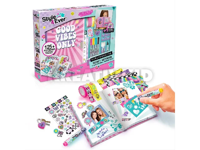 Itt az emlékkönyvek legújabb generációja! Ez a sima lapokból álló notesz nem holmi üres füzet. A csomagban mintegy 125 kiegészítő érkezik hozzá, amivel minden egyes lapját feldobhatod. Stencilek. Matricák két íven. Színespompás mintás lapok. Színes ragasztószalag. Filcek. Viasz toll. Ráadásul minden vagány csajos színekben! Ráadásul dobozban találsz egy medált, valamint egy szívecske formájú lakatot, amivel biztonságba rejtheted a titkos naplód tartalmát. Style 4 Ever kreatív szett a Canal Toys-tól, amit 6 éves kortól ajánlunk.