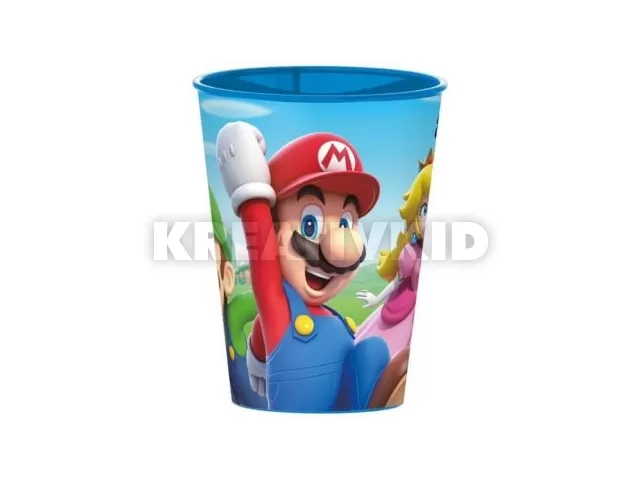 Super Mario mintával díszített eco műanyag pohár. Mikrohullámú sütőbe és mosogatógépbe nem tehető. Űrtartalma: 260 ml.