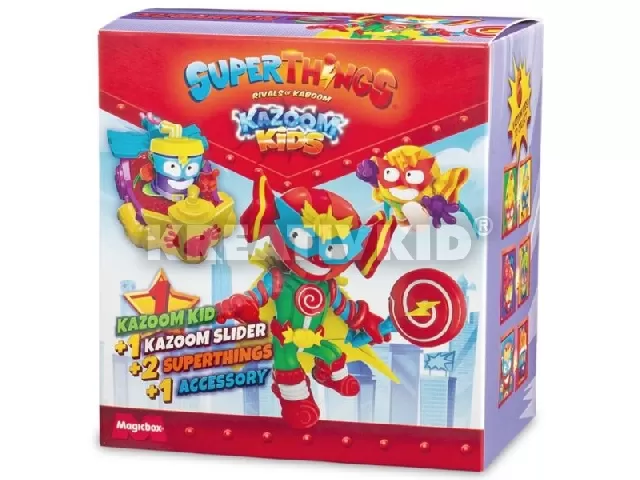 A SuperThings egy népszerű animációs sorozat, amelyben mindennapi tárgyak kelnek életre és válnak szuperhősökké vagy épp gonosztevőkké. A kis akcióhősök kalandjai Kazoom Cityben játszódnak, ahol az összecsapások során sokszor célravezetőbb, ha nem egyedül, hanem csapatban szállnak szembe az ellenféllel. Az pedig már csak hab a tortán, ha egy csúszka is a rendelkezésükre áll ehhez!