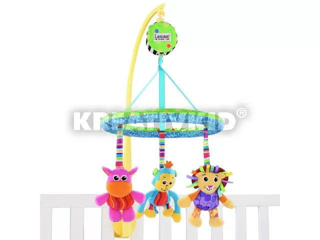 A kedves állatfigurák (egy majom, egy oroszlán, s egy víziló) élesen elütő, kontrasztos élénk színekben és mintákban ragadják meg a kisgyermekek figyelmét, lebegésükkel pedig folyamatos mozgásra, nyújtózásra késztetik őket.
