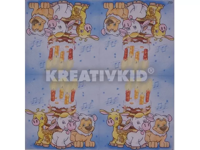 Szalvéta 33*33 cm 20 db/cs - PAW Állati szülinap kék