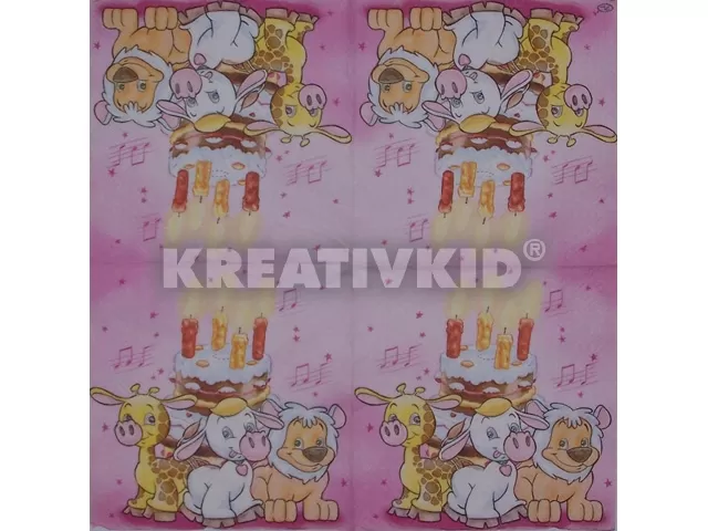 Szalvéta 33*33 cm 20 db/cs - PAW Állati szülinap rózsaszín