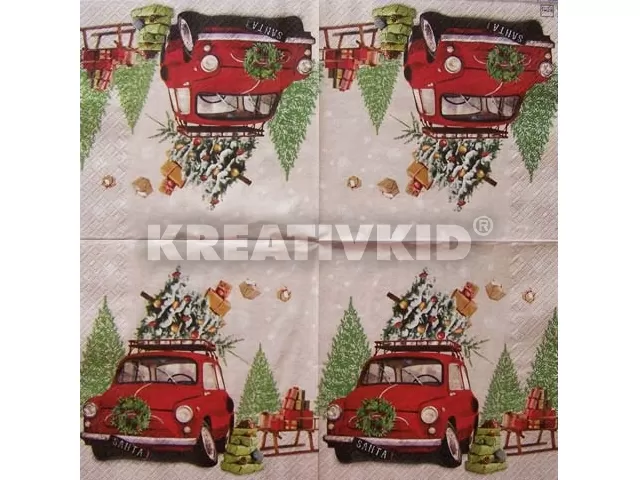 Szalvéta 33*33 cm 20 db/cs HOME Karácsony a piros autóval