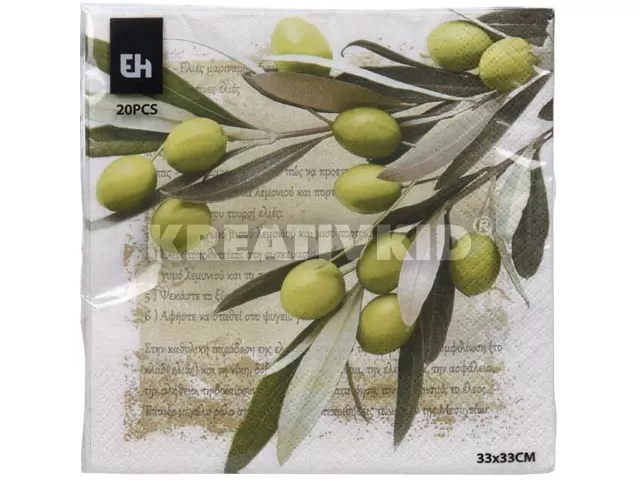Szalvéta 33x33 cm 20 db/cs - EH 3 rétegű Zöld olivabogyó