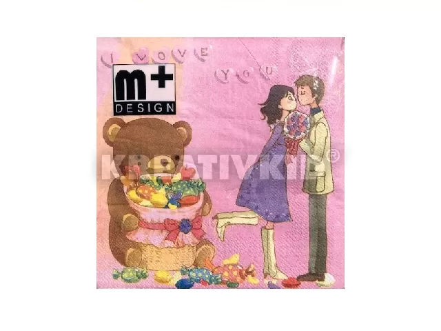 Szalvéta M+ Design 33*33 cm 20 db/csomag I Love You és a maci