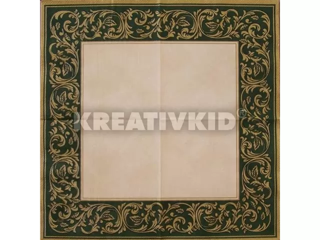 Szalveta Maki 33x33cm 20db/cs 3 rétegű - Zöld-arany szegély