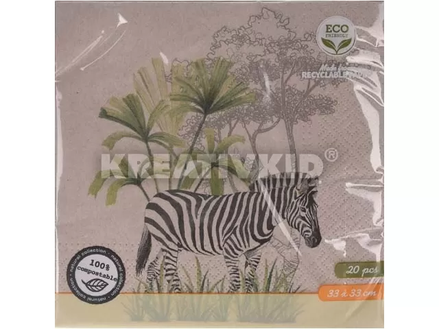 Szalvéta EH újrahasznosított 20db/cs 33x33cm 3 retegű Zebra