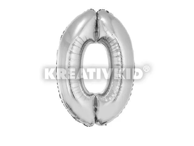 0 szám alakú fólia lufi, ezüst, 80 cm