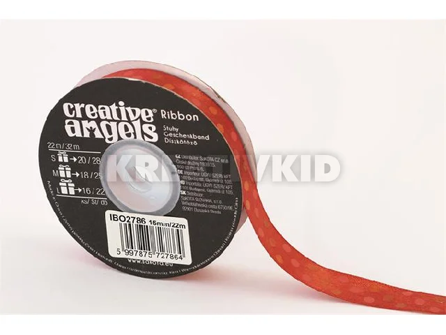 Szatén szalag, 15 mm x 22 m, piros vegyes pöttyökkel