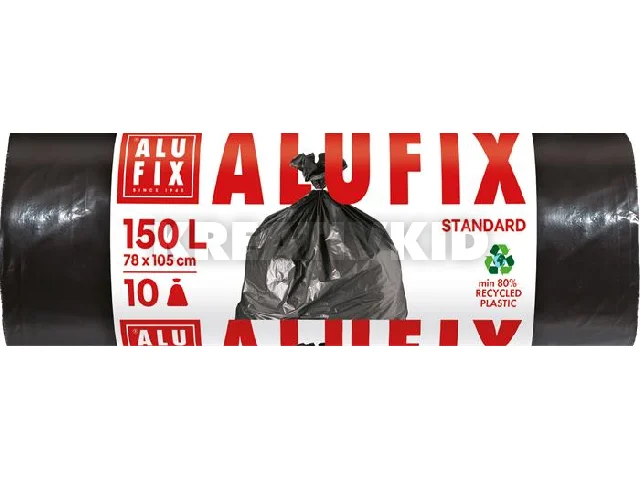 Szemeteszsák, 150 l, 10 db, 80x105 cm, 35 µ, ALUFIX, fekete