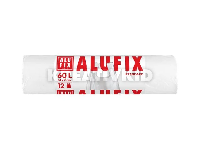 Szemeteszsák, köthető füllel, 60 l, 12 db, 63x71 cm, 10 µ, ALUFIX, fehér