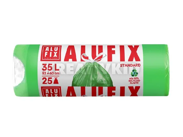 Szemeteszsák, zárószalagos, 35 l, 25 db, 53x60 cm, 15 µ, ALUFIX, zöld