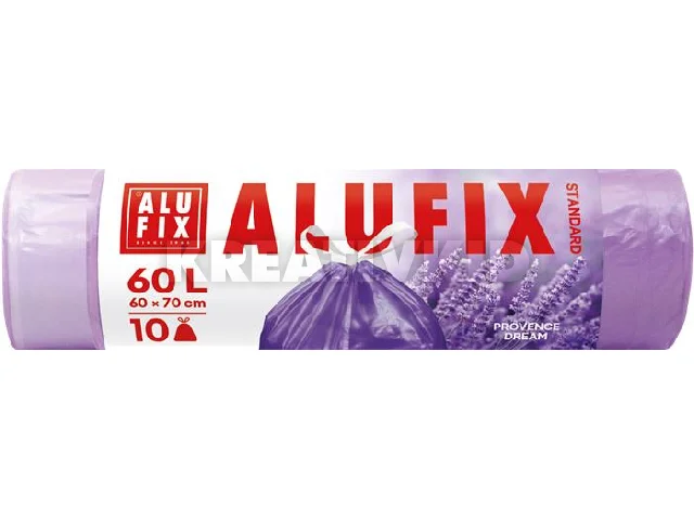 Szemeteszsák, zárószalagos, 60 l, 10 db, 60x70 cm, 15 µ, ALUFIX, levendula