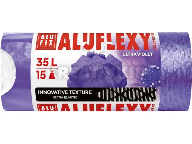Szemeteszsák, zárószalagos, LDPE, illatosított, 35 l, 15 db, 53x53 cm, 20 µ, ALUFIX "Aluflexy", lila