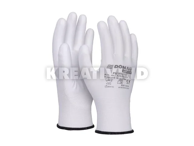 Szerelőkesztyű, PU, DONAU "Safety", 10/XL méret, fehér