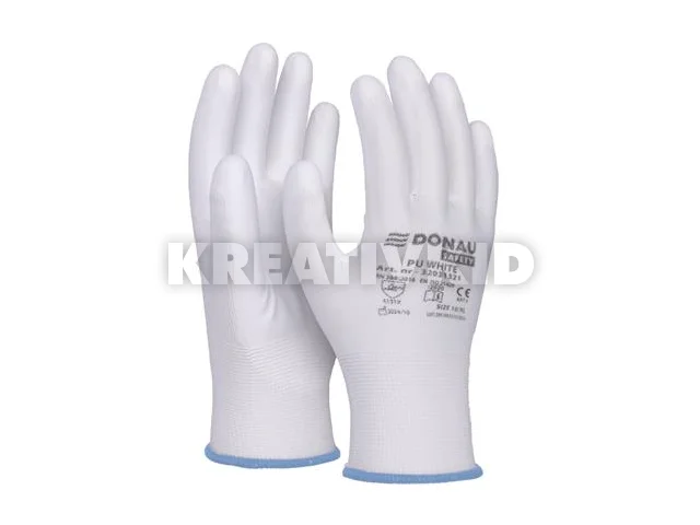 Szerelőkesztyű, PU, DONAU "Safety", 9/L méret, fehér