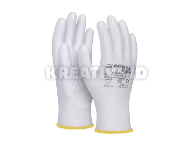 Szerelőkesztyű, PU, DONAU "Safety", 8/M méret, fehér