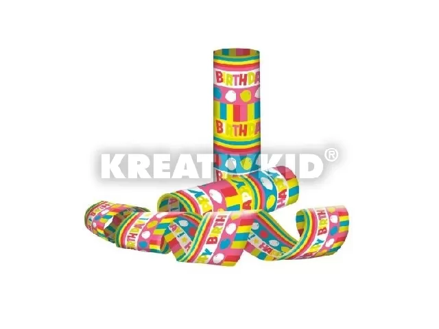 Szerpentin Happy Birthday, 14mm széles, hossza 4m, mindkét oldalán mintás.