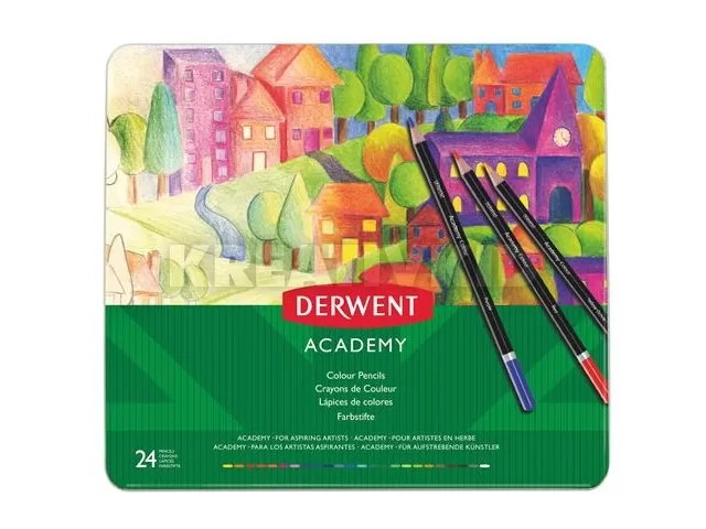 Színes ceruza készlet, fém doboz, DERWENT "Academy", 24 különböző szín