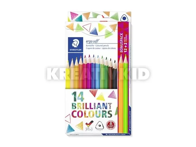 Színes ceruza készlet, háromszögletű, ajándék 2 db színes ceruzával, STAEDTLER "Ergo Soft", 14 különböző szín