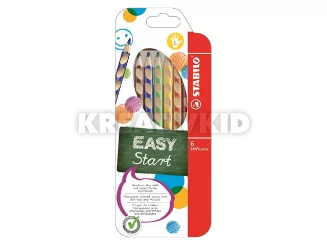Színes ceruza készlet, háromszögletű, balkezes, STABILO "EasyColours", 6 különböző szín