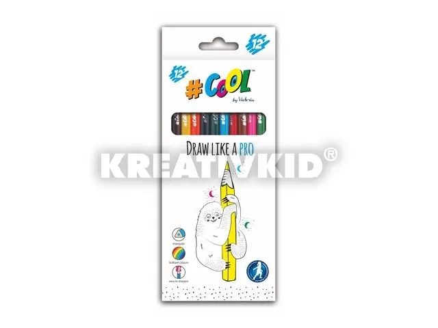 Színes ceruza készlet, háromszögletű, COOL BY VICTORIA, 12 különböző szín