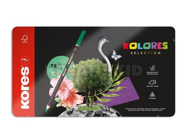 Színes ceruza készlet, háromszögletű, fém doboz, KORES "Kolores Selection", 72 különböző szín