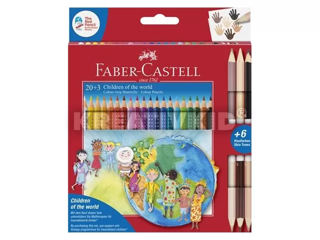Színes ceruza készlet, háromszögletű, FABER-CASTELL "Children of the world", 20+6 különböző szín