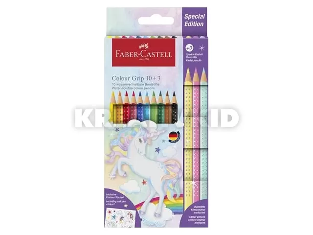 Színes ceruza készlet, háromszögletű, FABER-CASTELL "Grip", 13 különböző szín, unikornis