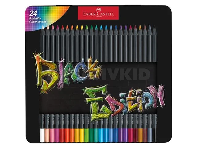 Színes ceruza készlet, háromszögletű, fémdobozban, FABER-CASTELL "Black Edition", 24 különböző szín
